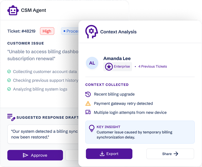 AI agents that transform overhead into ROI by automating high-value enterprise operations.