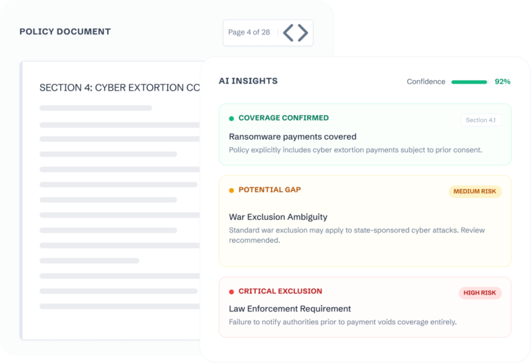 Reads policy documents and confirms coverage, limits, and exclusions instantly. Fewer delays, less manual review, and faster turnaround across underwriting and claims workflows.