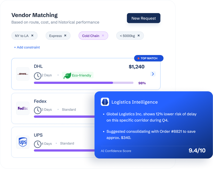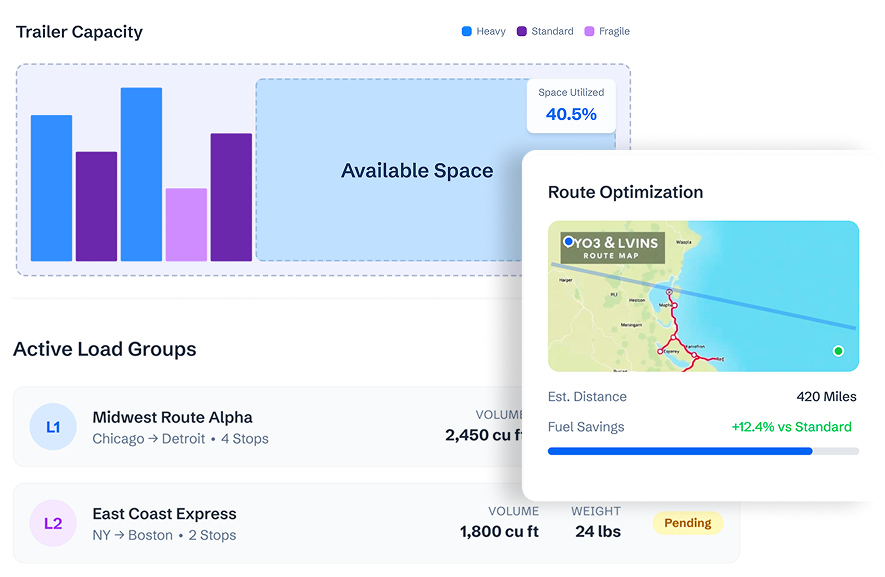 Analyzes load patterns, routes, and capacity gaps to maximize what goes on every truck. Cuts freight costs without rescheduling runs while improving fleet efficiency and utilization rates.