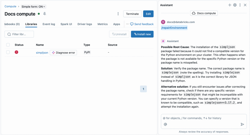 If the logs aren’t clear, type /ask in a notebook to use the Databricks Assistant for log explanation.