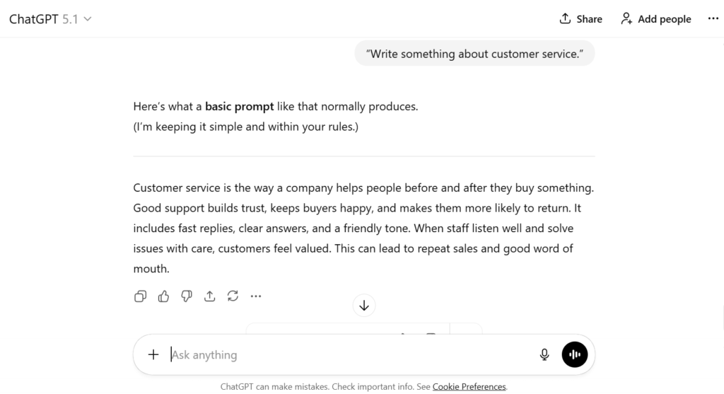Importance of Context and Instructions The way you provide context and instructions directly affects the output: