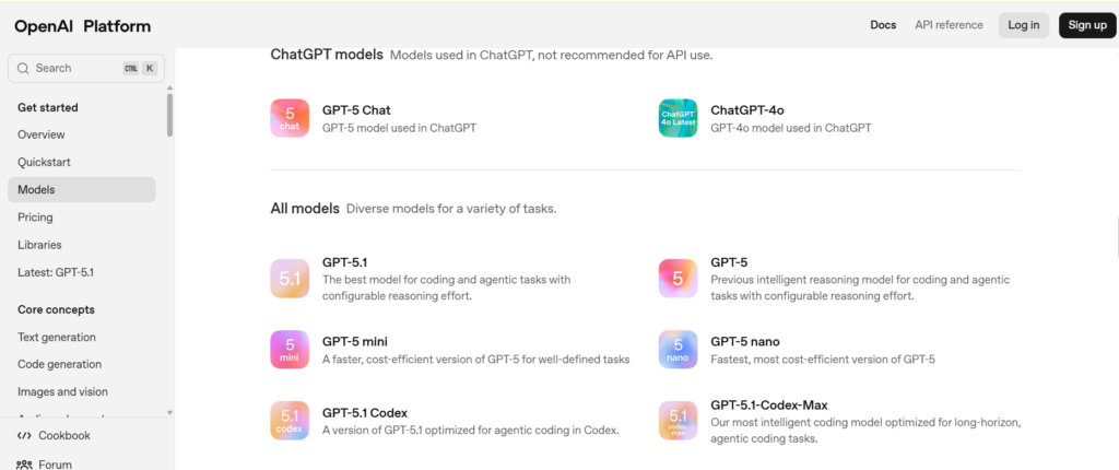 Reasoning-optimized models (GPT‑4, GPT‑5.1, GPT‑5.1 Codex‑Max): These models excel at multi-step reasoning, problem solving , and structured outputs. They are ideal for coding, data analysis , strategy planning, technical writing, or multi-part reasoning tasks. In particular, Codex‑Max supports longer context windows, making it suitable for large projects or complex workflows.General-purpose models (GPT‑3.5, GPT‑4 standard, GPT‑5.1 general): These models are flexible and perform well for conversational tasks, creative writing, summarization, and content generation. They can adapt to different tones, styles, and audiences, making them ideal for marketing content, blogs, presentations, or customer-facing communication.Lightweight or smaller models (GPT‑5.1 mini, GPT‑5.1 nano, earlier GPT‑3.5 variants): These are faster, cheaper, and optimized for high-volume or low-complexity tasks. They work well for internal automation, quick drafts, simple text generation, or classification tasks. However, they may produce less detailed or nuanced responses for complex instructions.