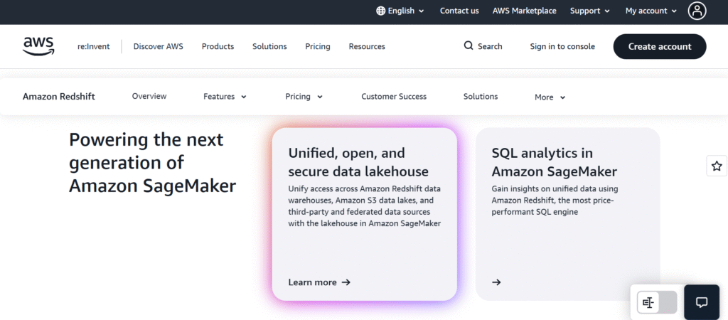 6. Amazon Redshift and AWS Analytics Services Redshift is the centerpiece of AWS’s warehousing capabilities, supported by services such as S3 for storage, Glue for ETL, Athena for interactive queries, and EMR for big data processing. Redshift now supports near real-time pipelines and advanced performance improvements, making it an essential part of unified setups built on AWS. Therefore, it remains a popular choice for AWS-centric organizations.