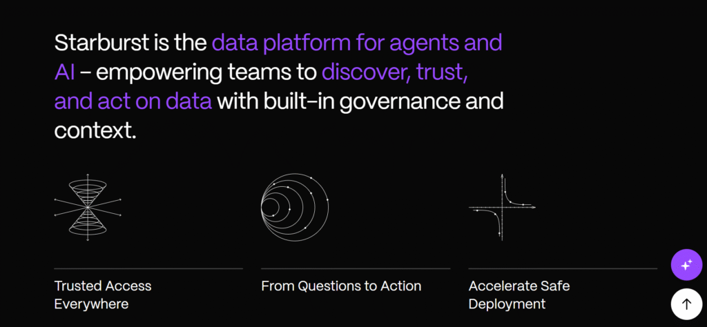 9. Starburst Data Starburst spun off from Teradata in 2017 to focus on developing an enterprise-grade distribution of Trino to address the growing market need for federated query features. In February 2022, the company secured $250 million in a Series D funding round, valuing it at $3.35 billion. Starburst enables teams to discover, govern, organize, analyze, and share data with self-service analytics across on-premises, hybrid, or cloud-centric data setups. In turn, the platform provides fast, interactive analytics across any data source without moving data.