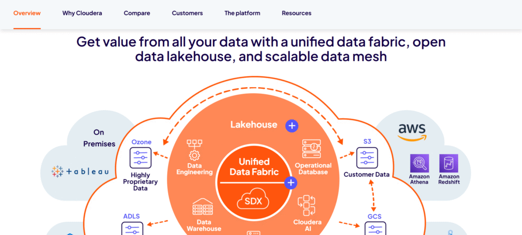 10. Cloudera Data Platform Cloudera supports hybrid setups where data must be managed across on-premise and cloud environments. It integrates data engineering, streaming, machine learning, and analytics under a single security and governance model. The platform includes Apache Hadoop, Spark, Kafka, and other open-source technologies wrapped in enterprise-grade security tools. In fact, organizations in regulated industries such as financial services and healthcare often choose Cloudera because it provides consistent governance policies regardless of where data resides. Consequently, it is a trusted choice for compliance-heavy sectors.